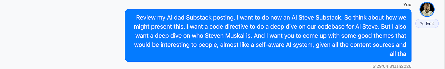 AI Steve is now sophisticated enough to describe itself and help document its own architecture. It did not write this post as an autonomous author. Instead, it augmented the writing process by retrieving technical details from documentation, surfacing timeline events I would have otherwise missed, suggesting structure based on previous posts, and validating technical statements against the underlying code and system behavior.