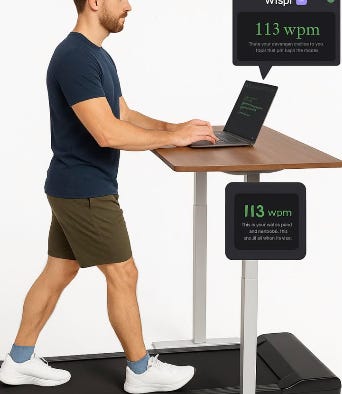 P.S. If you are curious - this is my coding setup - stand-up desk, walking treadmill, and Wispr (voice to text).
