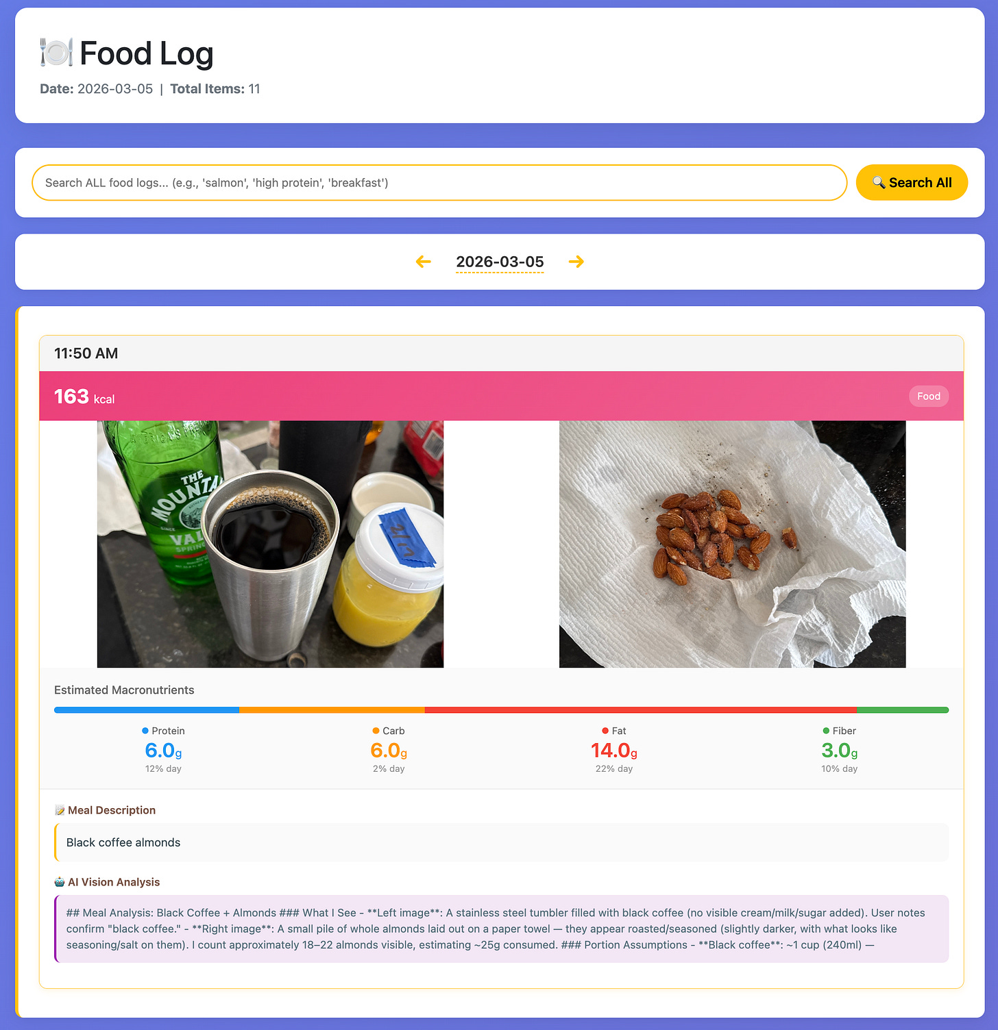 The food logging tool I was building for Kirsten suddenly looked like the missing component in the loop.