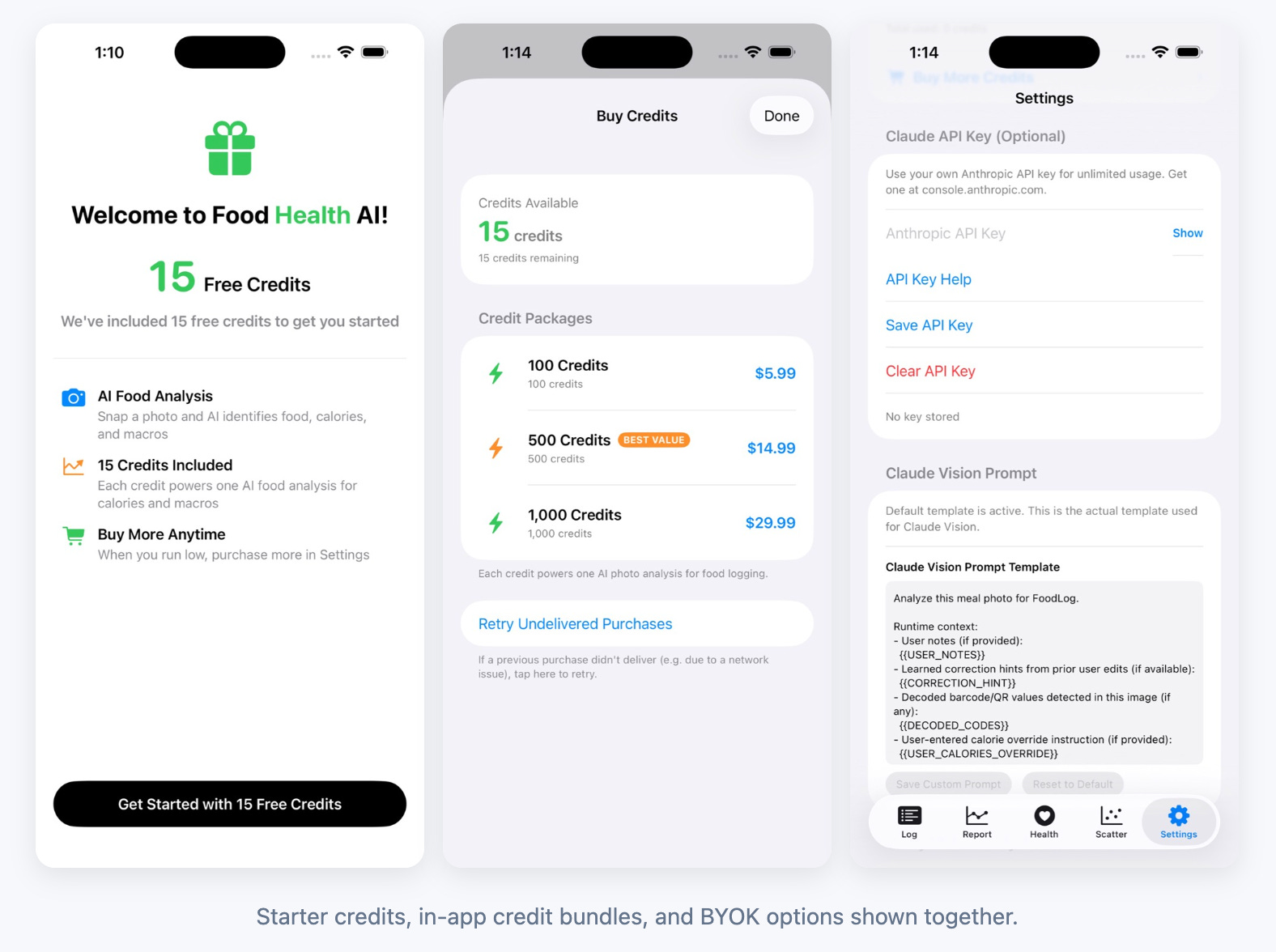 The current version therefore supports two approaches. Users can still supply their own API key if they prefer, but they can also purchase small bundles of analysis credits through in-app purchases. This dual model allows the system to remain flexible without creating unnecessary barriers to entry.