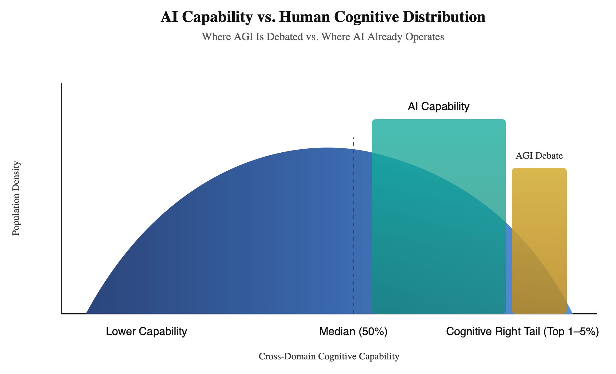 If AGI means economically substituting for human cognition across domains at scale, the threshold is already behind us. That is visible in code bases, in customer operations, in legal workflows, and in executive hiring logic.