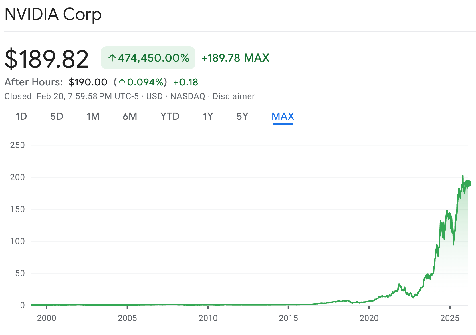 Figure 1. Nvidia Stock Price 1999 to 2026.